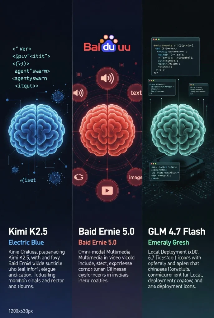 | Feature | Kimi K2.5 | Baidu Ernie 5.0 | GLM 4.7 Flash |